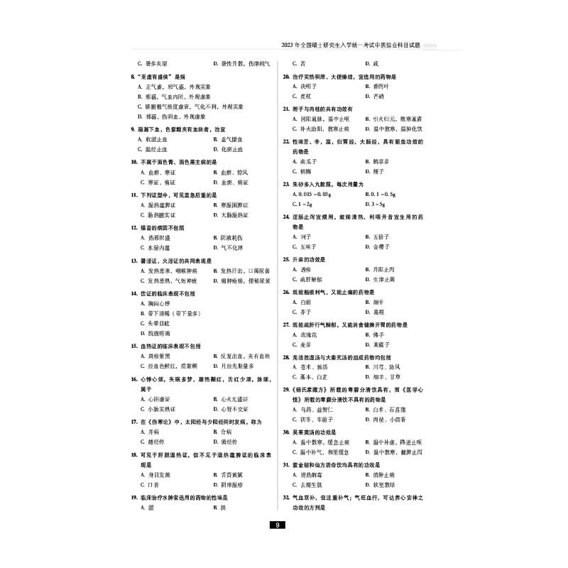 考研中医综合历年真题与解析
